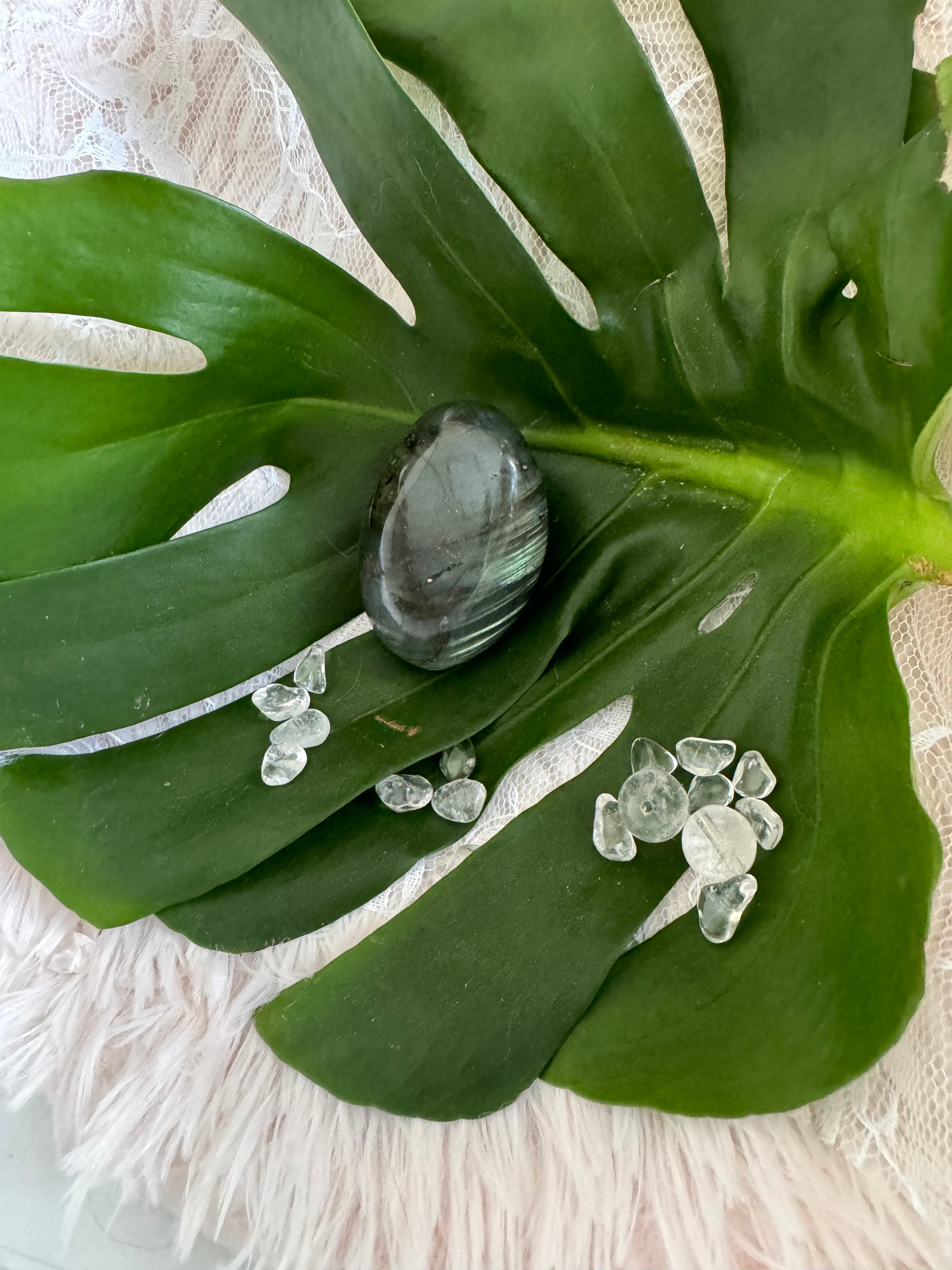 神秘的な青や黄緑の輝きが特徴で、見る角度によって様々な表情を見せてくれます。